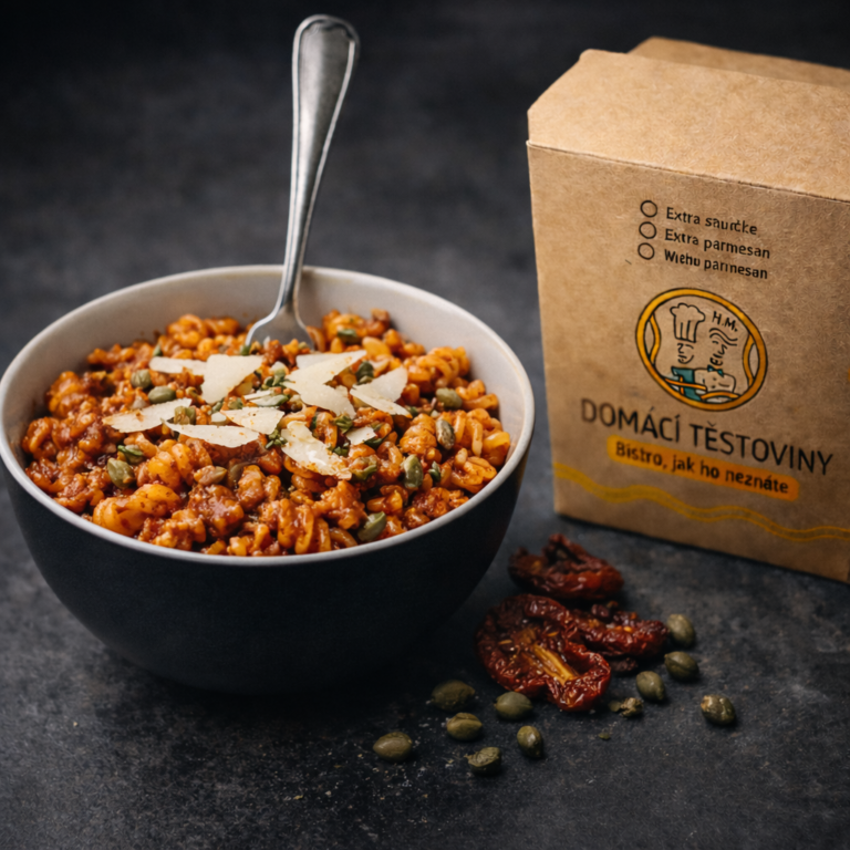 Čerstvé těstoviny s domácím pestem ze sušených rajčat s kapary a parmazánem 170.00Kč Sušená rajčata, kapary, panenský olivový olej, parmazán Category: 3 – Hlavní menu